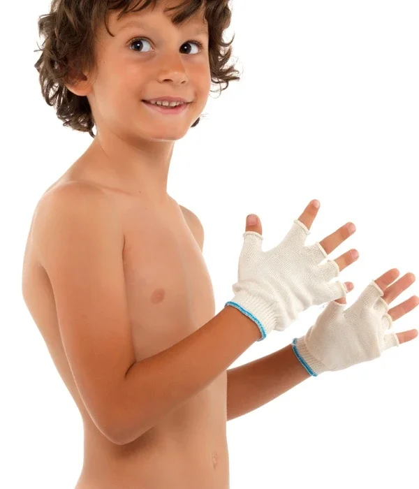 DermaSilk Handsker Barn Uden Fingre Handsker af 100% silkefibre uden generende sømme.